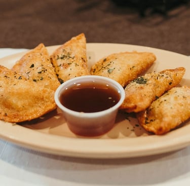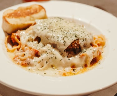 Stuffed mushroom, ricotta, and mozzarella ravioli overlayed with creamy white wine reduction, with a blend of cheese, garlic and specific seasons, and butter.