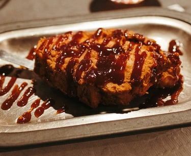 Pork belly, Gochujang mushrooms, seared pork tenderloin, served over twice baked potatoes.